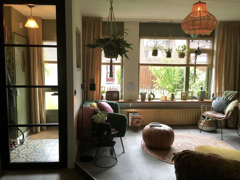 Daarnaast helpt het als je lijnen een rol laat spelen. De kleurkeuze van de plinten, de doorlopende vensterbanken, de hoge deuren die het plafond hoger doen lijken. De doorgetrokken muurkleur.